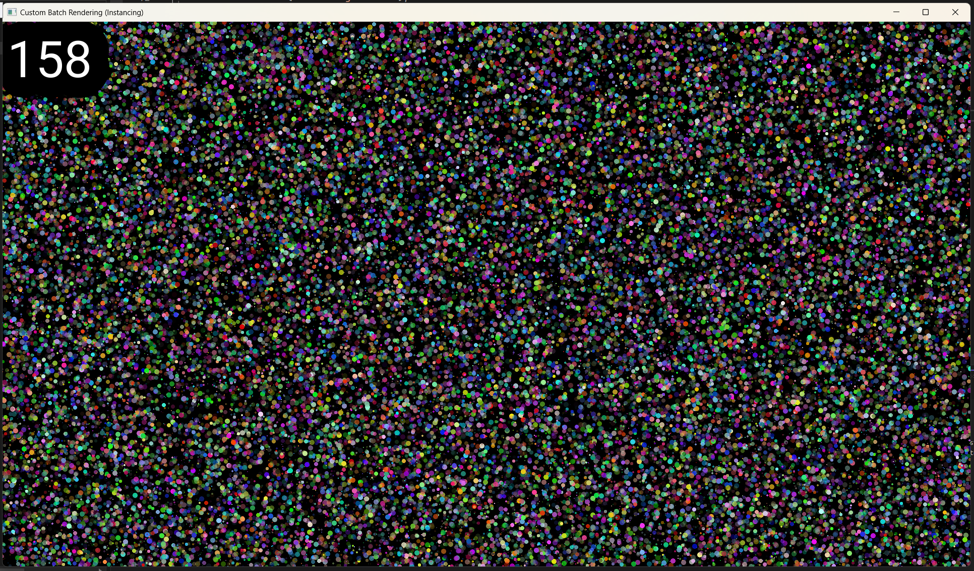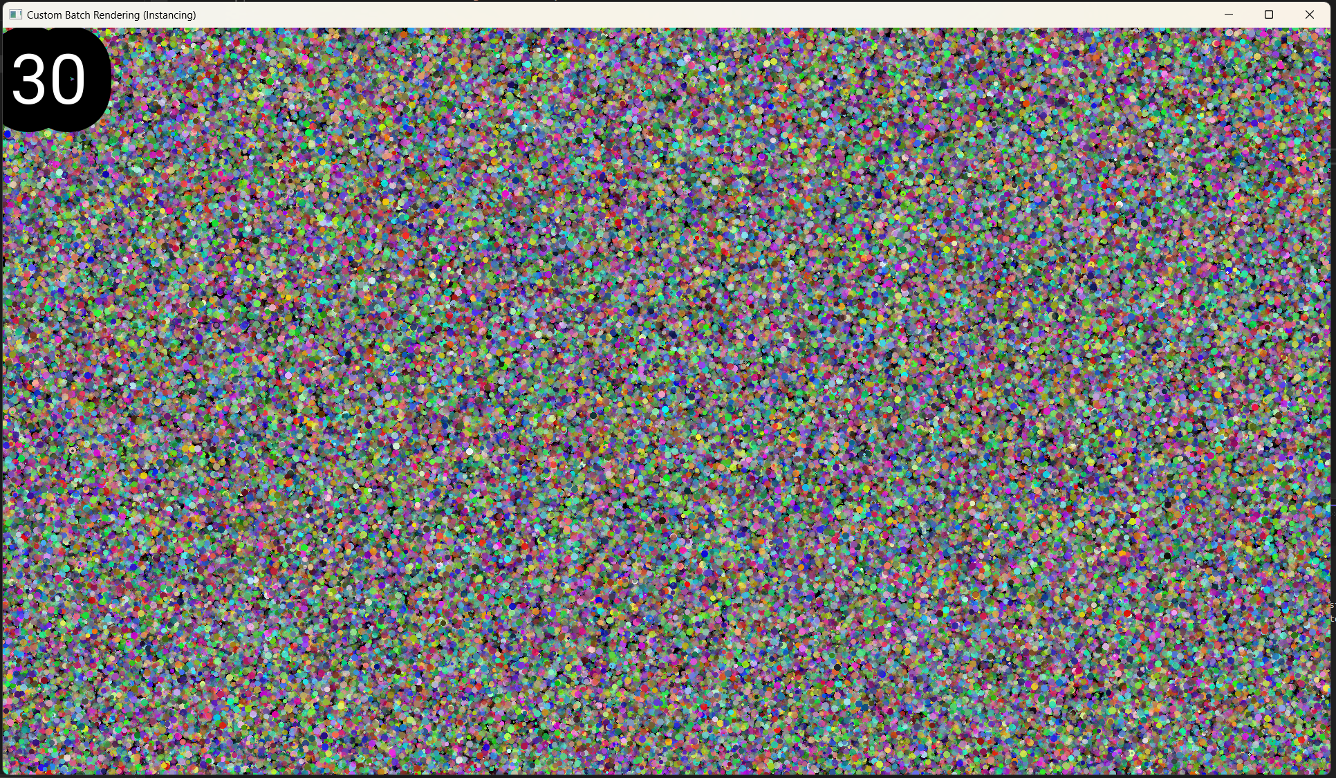 My own renderer can render 300,000 circles at 30 fps. SFML can only render 20,000, and godot 50,000. My renderer beats godot by 6 times the amount of circles it can render at 30 fps.